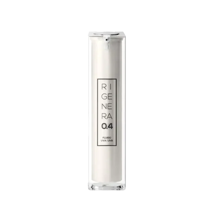Rigenera 0.4 Fluido UVA-UVB protegge dal sole senza lasciare residuo grazie alla sua trasparenza. Profumatissimo e ricca di olio di semi di girasole, nutre la nostra pelle mantennedola luminosa e idratata anche nei giorni più soleggiati.